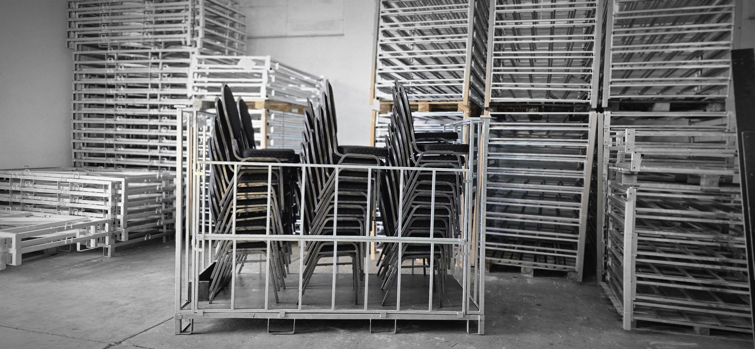 Durch die Kreuzverstrebung im Boden sind die Boxen auch mit kurzen Staplerzinken oder Hubwagen kippsicher zu bewegen. Die Gurthalter sorgen für einen zusätzlichen Rundumschutz der Bierzeltgarnituren. Dies ist ein entscheidender Vorteil gegenüber den nachgemachten Gestellen anderer Hersteller.